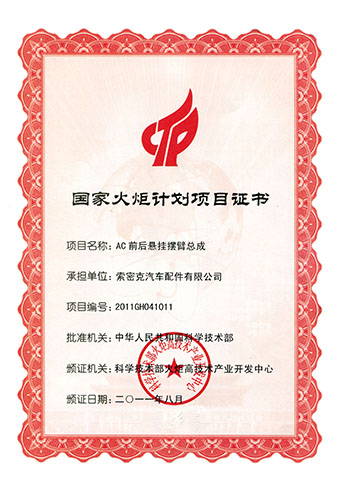 公司已先后通过IATF16949质量管理体系认证、ISO/14001环境管理体系认证和OHSAS18001职业健康安全管理体系认证。是“国家高新技术企业”“行业龙头企业”和“全国百家优秀汽车零部件供应商”。